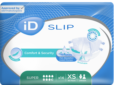 CS/12 (14/PKG) ID SLIP SUPER, X-SMALL, (16"-28"), 1550 ML ABSORBENCY.