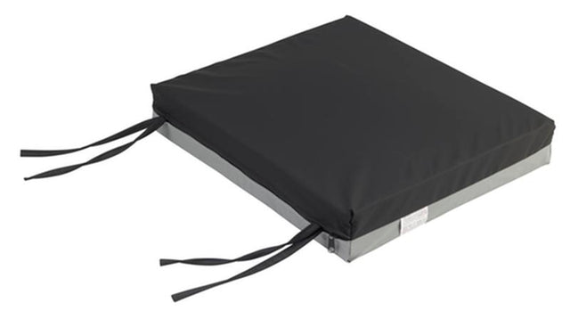 The Gel-U-Seat Lite cushion from Drive and Mason Medical is specifically designed to redistribute pressure to assist in the prevention of pressure ulcers while providing patient comfort by incorporating high-density foam surrounding a dual-chamber gel bladder. The fluid-resistant, low-shear stretch cover includes tie straps to secure to wheelchair.